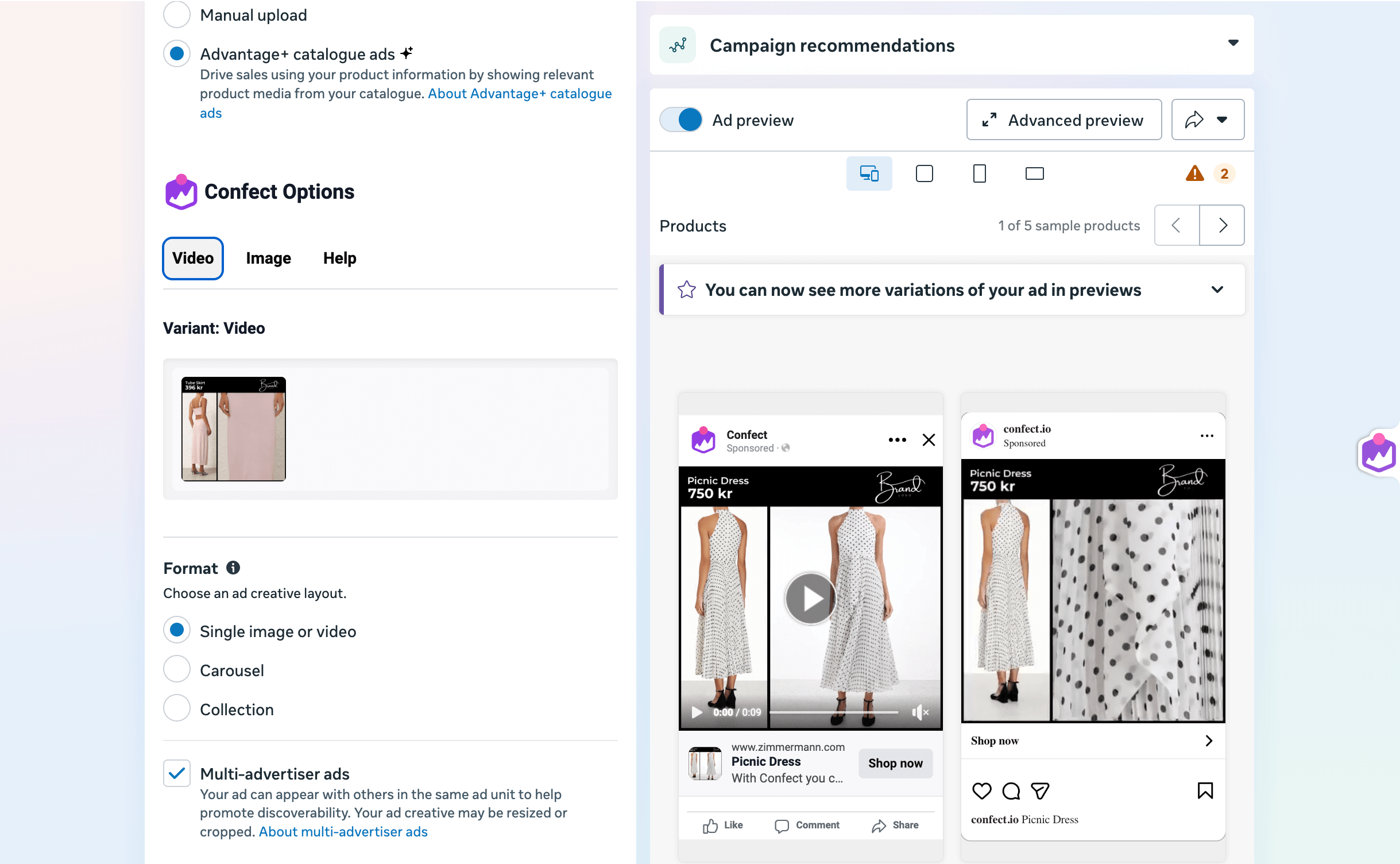 Once you have successfully created your first video template in Confect, you are just a couple steps away from catalog videos in your Ads Manager!